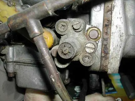 The bypass valves are located on the forward side of each carburetor. There are three slotted screws that hold the bypass assembly in place. The phillips screws need not be disturbed. A stubby screwdriver is needed to do the rear carb.