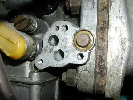 Block off plate in place ready to be reinstalled. No gasket is required but if it makes you feel better, a light wipe of Hylomar will ensure a good seal. IMPORTANT- the block off plate goes flat against the carb body without a gasket.