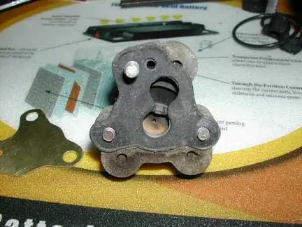 With the bypass assembly removed you can see the gasket. Notice the cut in the gasket between holes? Even with the valve functioning properly air leaks through that cut.