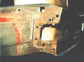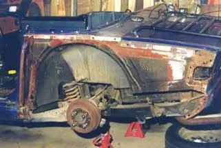 Inside the fenders there are no wheel wells to contain the dirt and water spray kicked up by the tires. The tires constantly feed the assault on the “B” posts. Water, dirt, or in my case, road salt, pile up behind the “B” post. To the rear there is nothing to slow the assault either. Built into the very back of the rear fenders is a box that houses the tail lights. This box is one off the first things to show rust on a TR6. Eventually rust will hole the box and you will find dirt and water in the trunk. When buying a TR6 look carefully at the back of the tail lights, if there is sand, the box within the fender is damaged. Rust first appeared on my rear fenders on the outside of the fender where the box is spot welded. The inner fender where the tailight box intersects was also holed by rust.